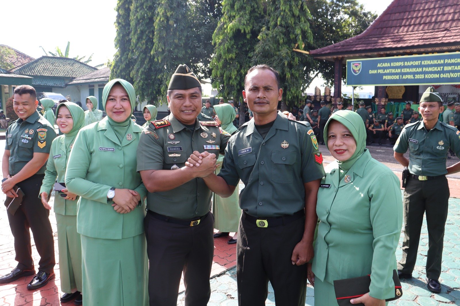 Kegiatan dilanjutkan dengan Laporan Korps Kenaikan Pangkat Perwira, Bintara dan Tamtama Kodim 0411/KM periode 1 April 2025.