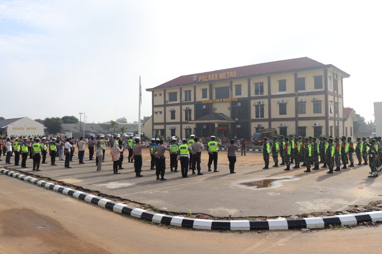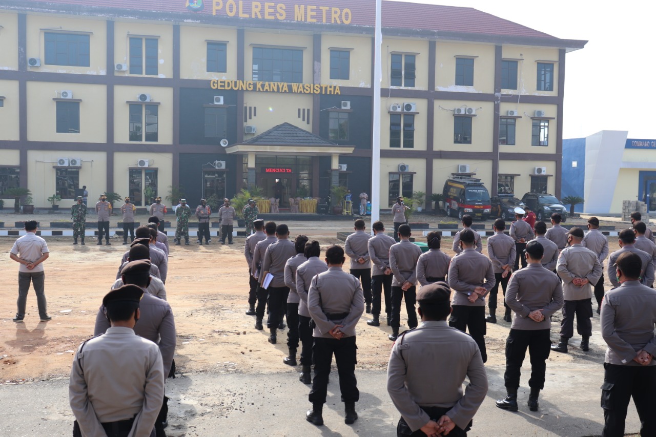 Saat pengarahan Kapolres Metro mengatakan “Terkait dengan Situasi Kondisi Keamanan secara umum, kita harus melakukan Sinergitas TNI-Polri, dalam menjaga kondusifitas wilayah Kota Metro”.