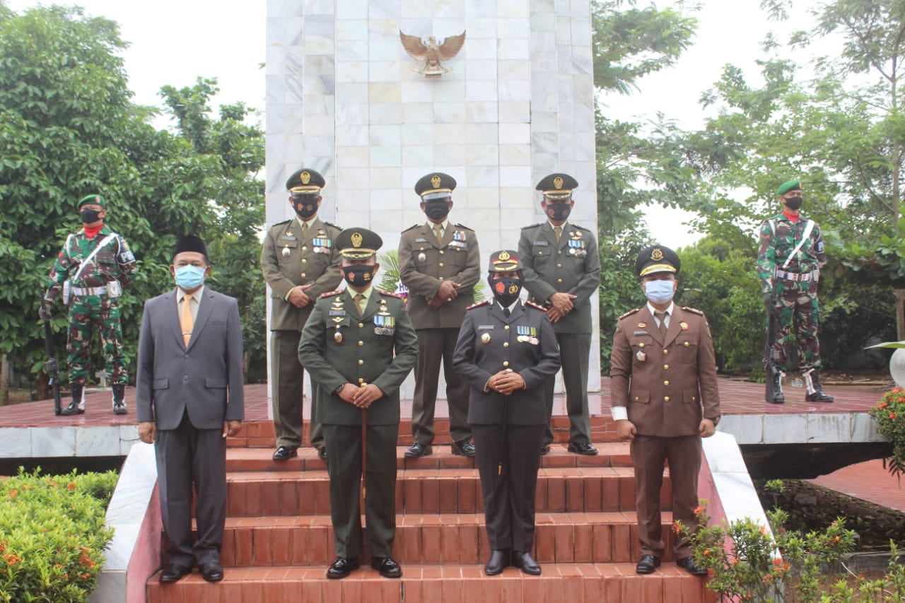 Kodim 0411/LT dan Forkopimda Kota Metro melaksanakan Upacara Ziarah Nasional dan Tabur Bunga dalam rangka memperingati HUT TNI Ke-75 Tahun 2020 di Taman Makam Pahlawan Kemala Nusantara Kel. Ganjar Asri, Kec. Metro Barat Kota Metro. Jum’at pagi (02/10/2020)