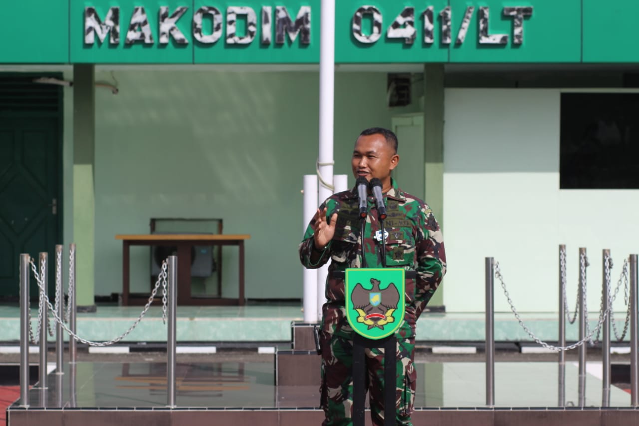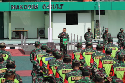 Hadir dalam Apel Siaga Kasdim 0411/LT Mayor lnf Bagus Setiawan,.S.Sos., seluruh Perwira Staf, Danramil Jajaran Kodim 0411/LT beserta seluruh anggota.