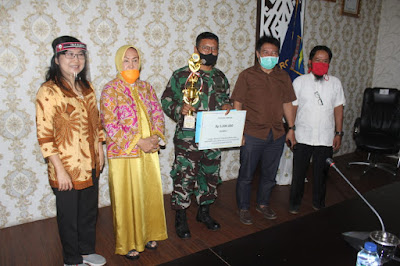 Kapten Inf Suprobo mewakili Dandim 0411/LT Letkol Czi Burhannudin,S.E.Msi menerima Piala, Piagam dan uang pembinaan dari Walikota Metro.