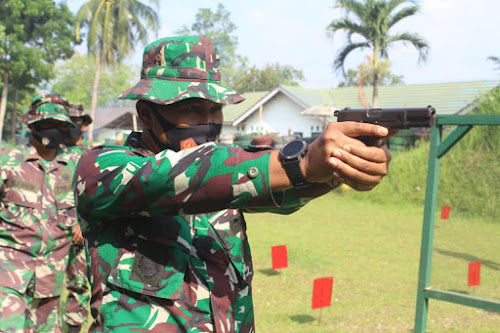 Personel yang latihan menembak pistol berjumlah 29 orang terdiri dari Perwira Kodim 0411/LT 12 orang, Provost 6 orang, Anggota Kesehatan 1 orang, Anggpta Staf Ops 4 orang dan Anggota Unit Intel 6 orang.