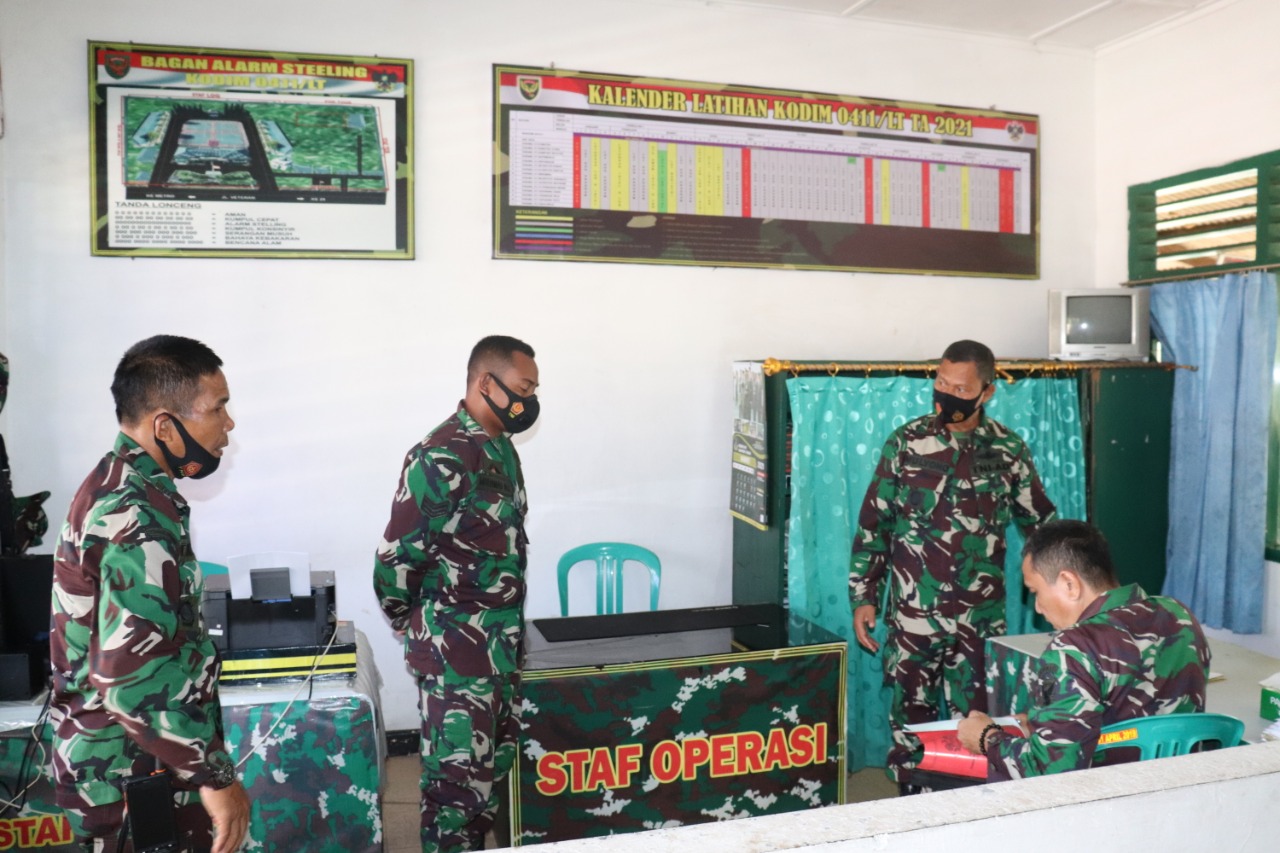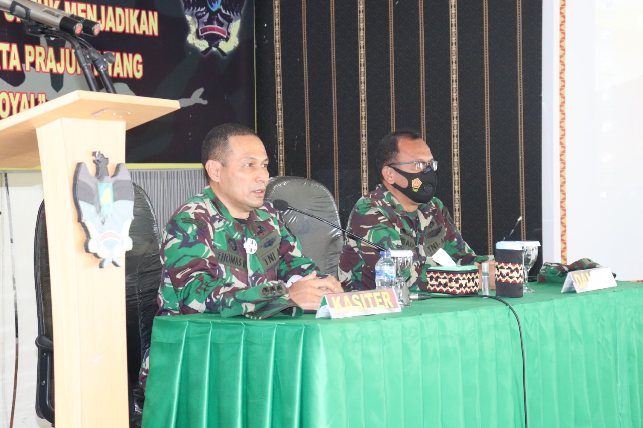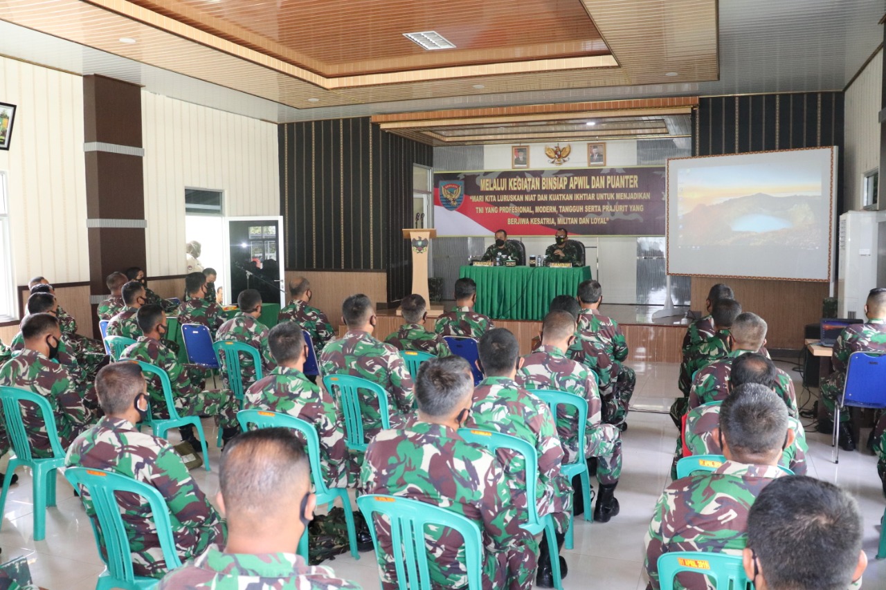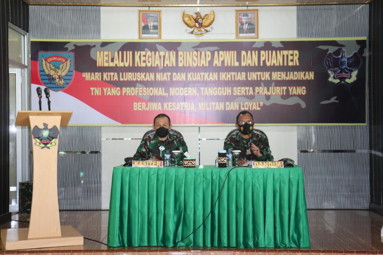 Kodim 0411/LT melaksanakan Pembinaan Kesiapan (Binsiap) Aparat Komando Kewilayahan (Apwil) dan Kemampuan Teritorial (Puanter) Tahun 2021 dengan tema ‘Mari Kita Luruskan Niat dan Kuatkan Ikhtiar Untuk Menjadikan TNI yang Profesional,Modern, Tangguh Serta Prajurit yang Berjiwa Ksatria, Militan dan Loyal’ bertempat di Aula Pamungkas Makodim 0411/LT Jln. Veteran 22 Hadimulyo Barat Kota Metro. Kamis (08/04/21).