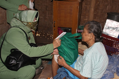 Usai kunjungan rombongan melanjutkan kegiatan bhakti sosial berupa pemberian tali asih dan bingkisan sembako kepada kaum duafa dan lansia di wilayah binaan Koramil 411-01,02 dan 03, diantaranya Rusmini (40 th) pekerjaan Buruh dan Destariana (35 th) pekerjaan Buruh warga Kelurahan Iring Mulyo Kecamatan Metro Timur, Harjo Pardi (71 th), pekerjaan Tani dan Mujiyem (80 th) warga Kelurahan Margorejo Kecamatan Metro Selatan serta Sumiaton (70 th) dan Soginem (88 th) warga Kelurahan Purwoasri Kecamatan Metro Utara. (DL)