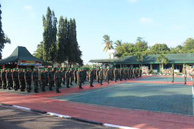 Prajurit Kodim 0411/LT melaksanakan Apel Pagi Minggu Militer dipimpin oleh Pabung Mayor Inf Bagus S. dilanjutkan dengan pengarahan Dandim 0411/LT Letkol Czi Burhannudin,S.E.,M.Si di lapangan Apel Makodim 0411/LT Jln. Veteran 22 Hadimulyo Barat Kota Metro. Senin (24/02/2020).