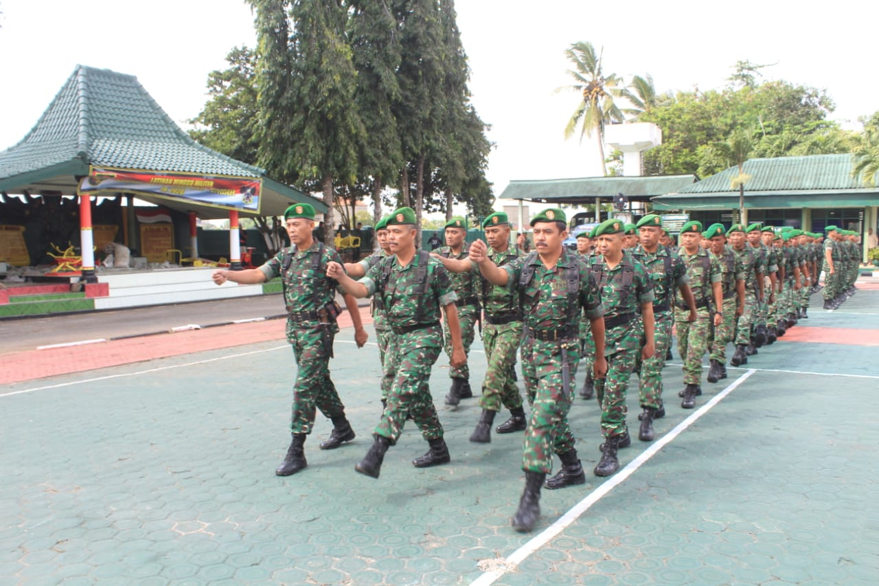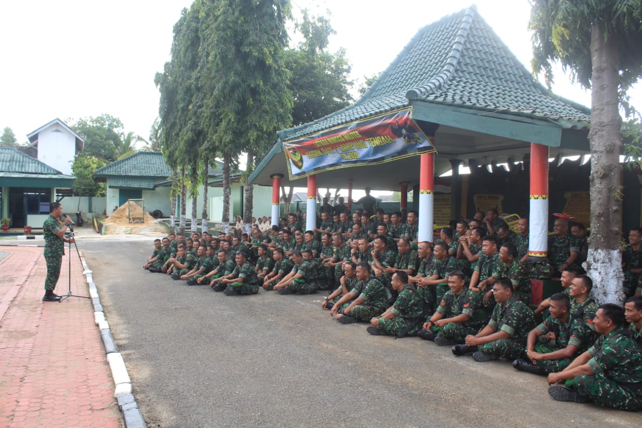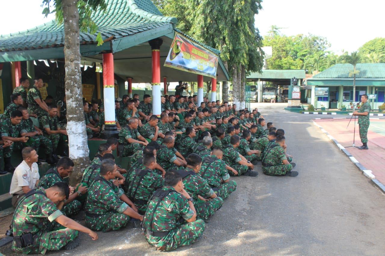 Prajurit Kodim 0411/LT melaksanakan Apel Pagi Minggu Militer dipimpin oleh Pabung Mayor Inf Bagus S. dilanjutkan dengan pengarahan Dandim 0411/LT Letkol Czi Burhannudin,S.E.,M.Si di lapangan Apel Makodim 0411/LT Jln. Veteran 22 Hadimulyo Barat Kota Metro. Senin (24/02/2020).