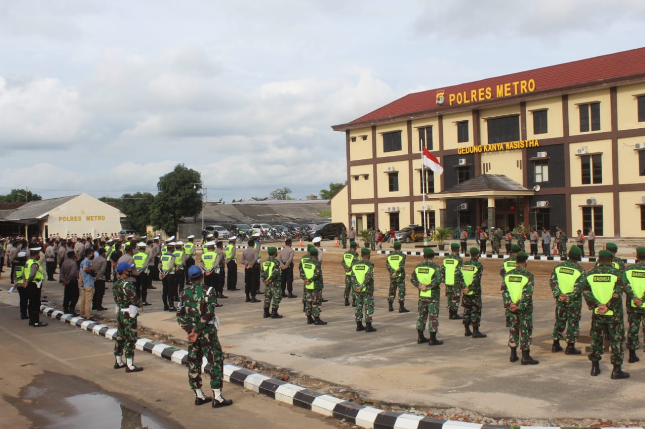 Guna menciptakan rasa aman dan kondusif di wilayah binaan serta memperhatikan keselamatan masyarakat di masa pandemi Covid 19, Kodim 0411/LT dan Polres Metro menggelar Apel dan Patroli Pengamanan Pergantian Tahun Baru 2021 bertempat di Halaman Mapolres Kota Metro,Jl. Diponegoro No.6, Imopuro, Kec. Metro Pusat, Kota Metro. Kamis (31/12/2020)