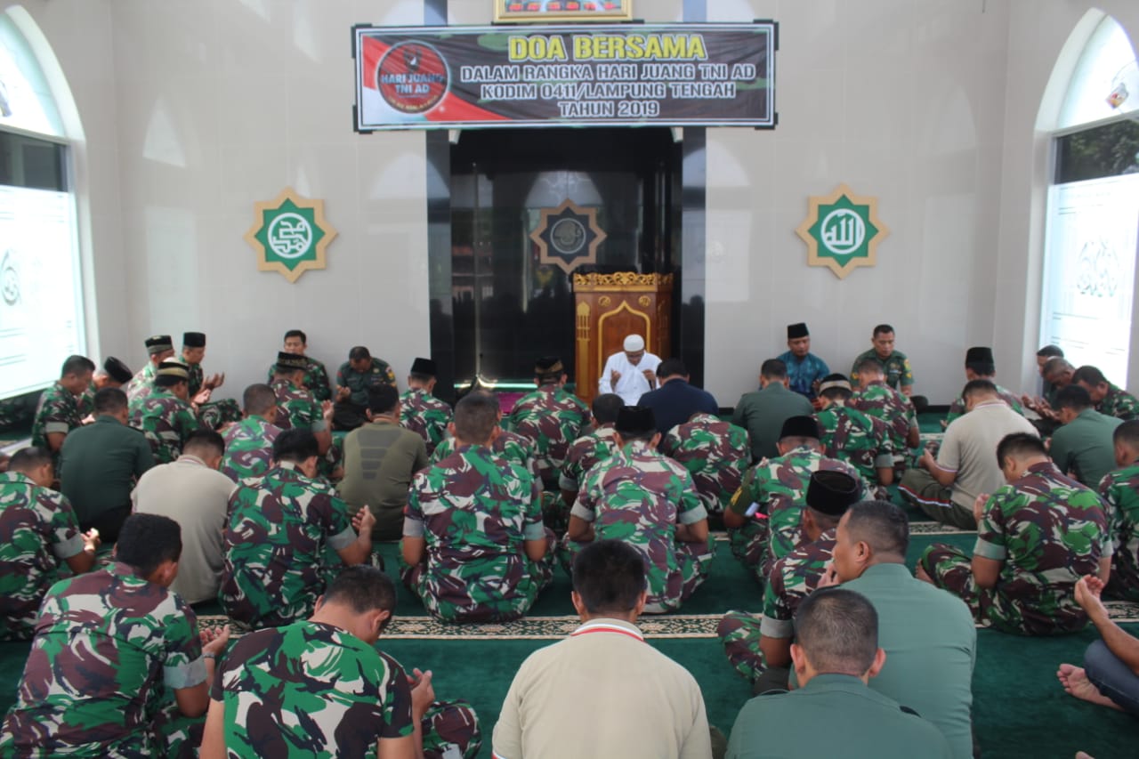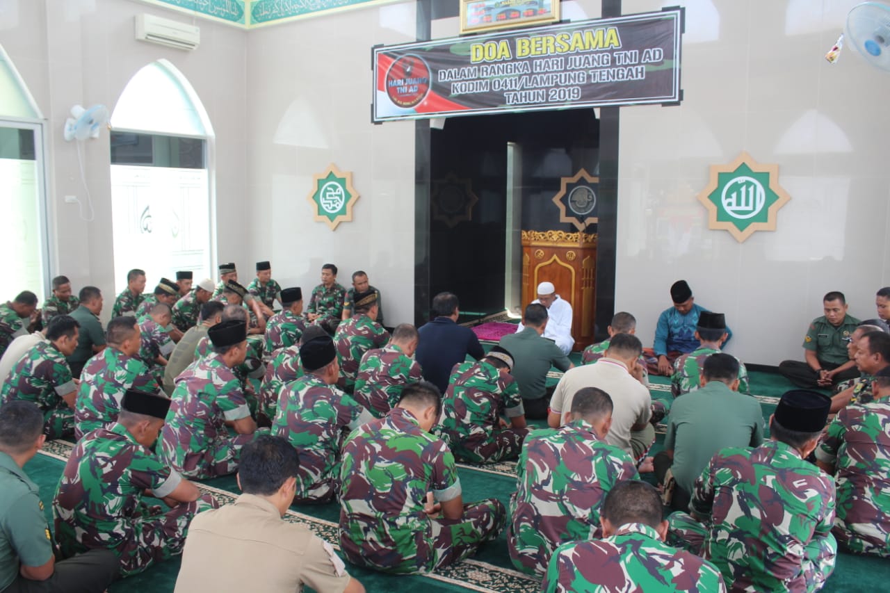 Doa Bersama ini dilaksanakan setelah ibadah Sholat Jum’at dan dilanjutkan dengan sambutan Dandim 0411/LTÂ “Peringatan Hari Juang Kartika merupakan suatu sarana untuk mengenang kembali sejarah lahirnya TNI AD sehingga diharapkan dapat memupuk semangat dan jiwa korsa prajurit-prajurit TNI AD dalam meningkatkan pengabdian kepada negara dan bangsa, memantapkan kemanunggalan TNI AD dengan Rakyat guna mewujudkan TNI AD yang kuat“.