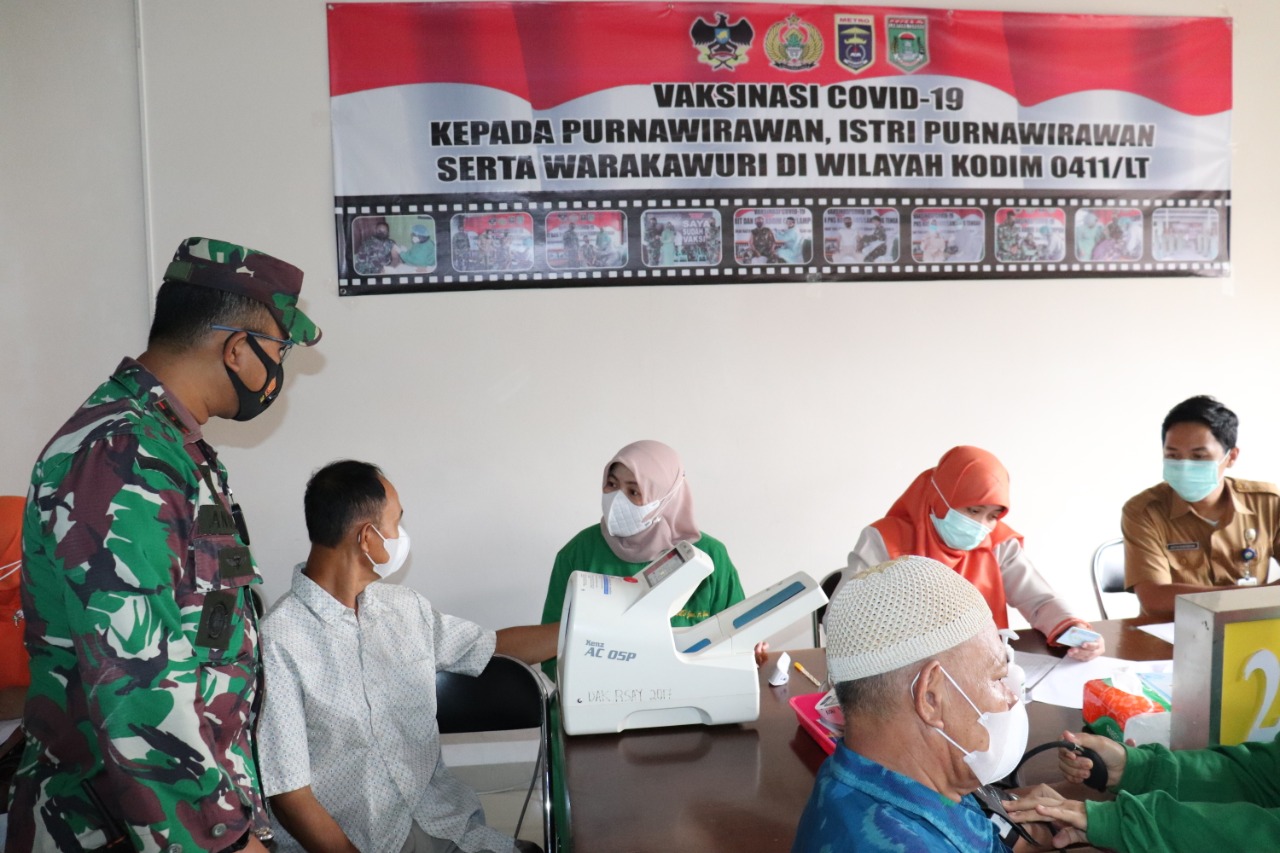 “Kami selaku Komando kewilayahan mendukung penuh kegiatan vaksinasi terhadap para sesepuh dalam hal ini para Purnawirawan beserta istri juga Warakauri dan KBT Binaan Kodim 0411/LT” terang Dandim.