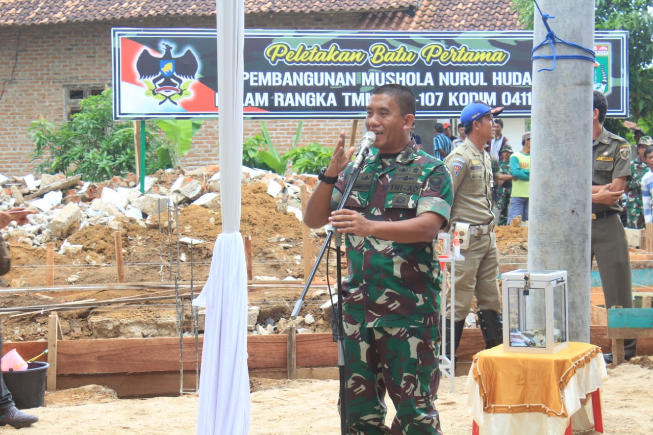 Momen terindah bagi warga saat mereka menyaksikaan Bupati Lamteng Loekman Djoyosoemarto dan Komandan Kodim 0411/LT Letkol Czi Burhannudin,S.E.M.Si meletakkan Batu Pertama di pondasi Musholla Nurul Huda sebagai simbolis Pra TMMD Ke 107 Kodim 0411/LT dimulai.