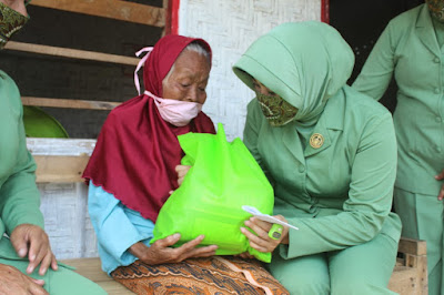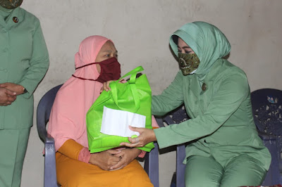 Dandim 0411/LT dan Ketua Persit dalam tali asihnya menyambangi Sahari beserta Ismawati (40 tahun) penyandang disabilitas tunanetra di Lingkungan V RT 23 RW 08 Kelurahan Simbarwaring Kecamatan Trimurjo dan Wagiyem (60 tahun) yang mengalami sakit dompo di Lingkungan V RT 27 RW 10 Kelurahan Simbarwaring Kecamatan TrimurjoÂ