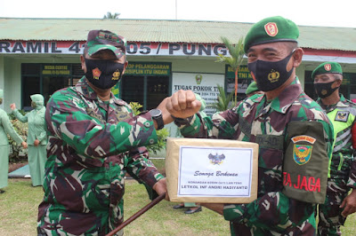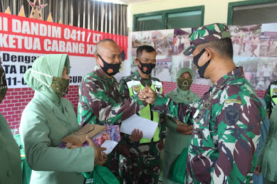 Rangkaian kegiatan selanjutnya Dandim beserta Ketua Persit memberikan bingkisan dan uang pembinaan kepada Koramil yang dikunjungi serta memberikan bingkisan kepada piket masing-masing Koramil.