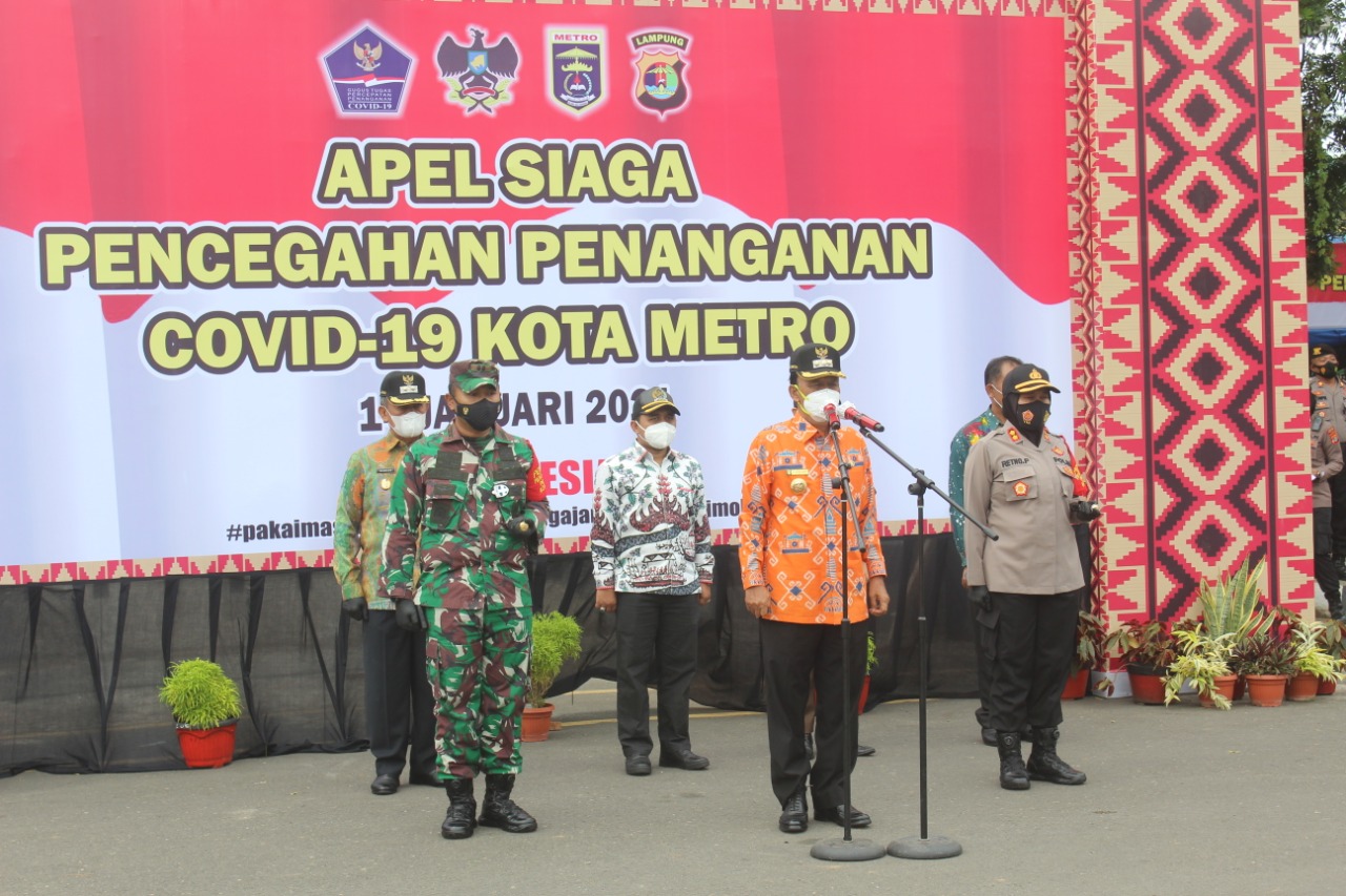Apel Siaga ini sebagai bentuk sosialisasi lanjutan yang bertujuan untuk menegakkan hukum protokol kesehatan dalam upaya pencegahan dan pengendalian penyebaran Coronavirus Disease 2019 di Kota Metro.
