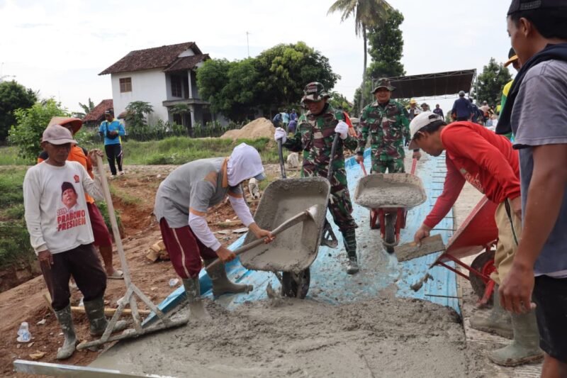 TNI dan Warga Mujirahayu Swadaya Cor Jalan Strategis Penghubung Antar Kabupaten