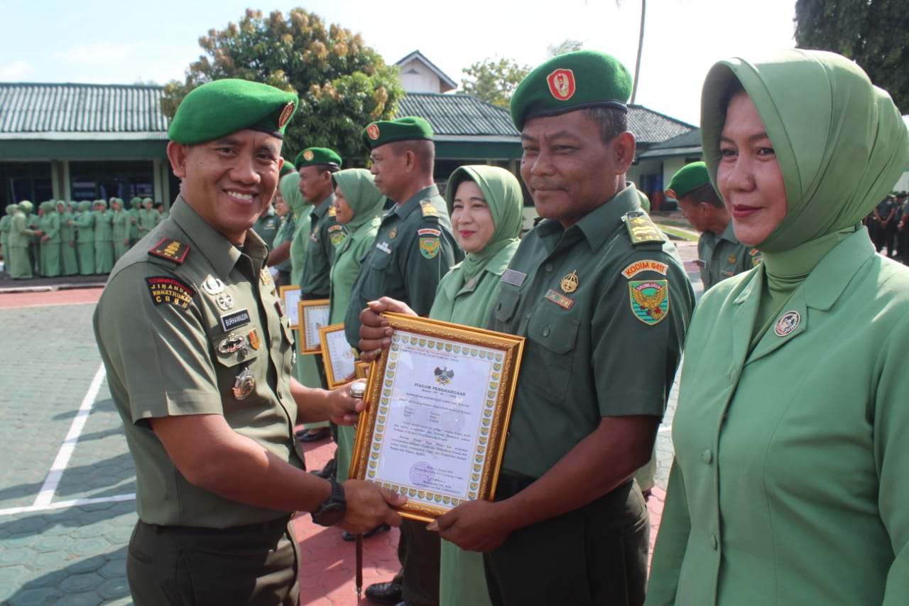 Dandim 0411/LT Letkol Czi Burhannudin,S.E.,M.Si menerima laporan Corp Raport Anggota Kodim 0411/LT yang pindah Satuan a.n. Kapten Czi Andi Emil Syah (Pasipersdim 0411/LT ke Satuan Ditziad) dan Kapten Czi Indhu Firmansyah (Pasilogdim 0411/LT ke Satuan Pusdikzi Kodiklat) serta Sertijab Danramil a.n. Kapten Chb Herry S. Danramil 411-01/Kalirejo yang menjabat menjadi Danramil 411-24/Metro Utara, Kapten Inf Sapji Danramil 411-07/Punggur yang menjabat menjadi Danramil 411-17/Seputih Banyak, Kapten Inf Subagio Danramil 411-17/Seputih Banyak yang menjabat menjadi Danramil 411-07/Punggur, Kapten Inf Sabariyanto Pasiterdim 0411/LT yang menjabat menjadi Danramil 411-01/Kalirejo juga menerima laporan pelepasan 15 Anggota dan PNS Kodim 0411/LT yang memasuki Masa Persiapan Pensiun (MPP) periode Januari 2020 di Makodim 0411/LT. Selasa (14/01/20)