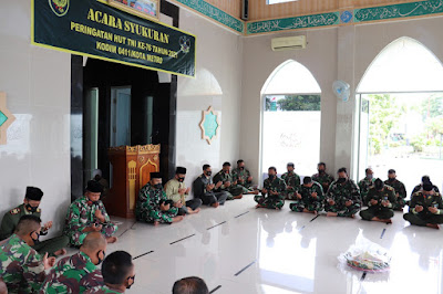 Bertemakan ‘Bersatu Berjuang, Kita Pasti Menang’ Dandim 0411/KM Letkol Inf Andri Hadiyanto,M.Han., dalam sambutannya mengatakan “Seiring dengan bertambahnya usia, semoga diberikan keberkahan oleh Allah SWT dalam menjalankan fungsi dan tugasnya, serta semakin sukses dan tetap jaya, mari kita semua berdoa agar semua anggota keluarga besar TNI, kususnya Kodim 0411/KM diberikan perlindungan oleh Allah SWT,â€Â ucap Dandim. (DL)