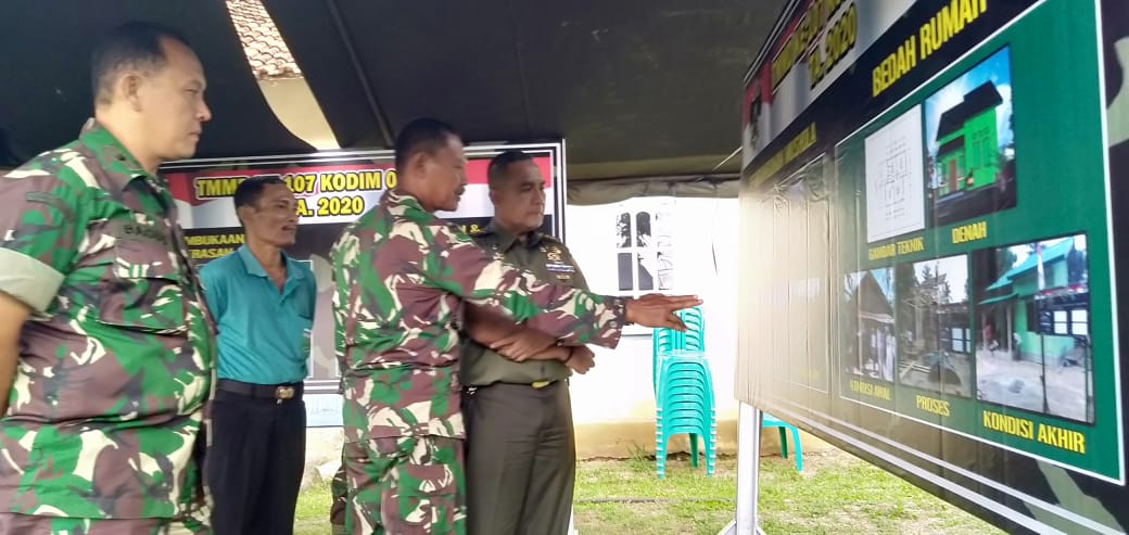 Kemudian Tim Wasev meninjau langsung langsung titik-titik pelaksanaan TMMD ke 107 Kodim 0411/LT meliputi sasaran bedah rumah, pembuatan jalan, peembangunan musholla dan pelebaran jembatan penghubung dua kampung.