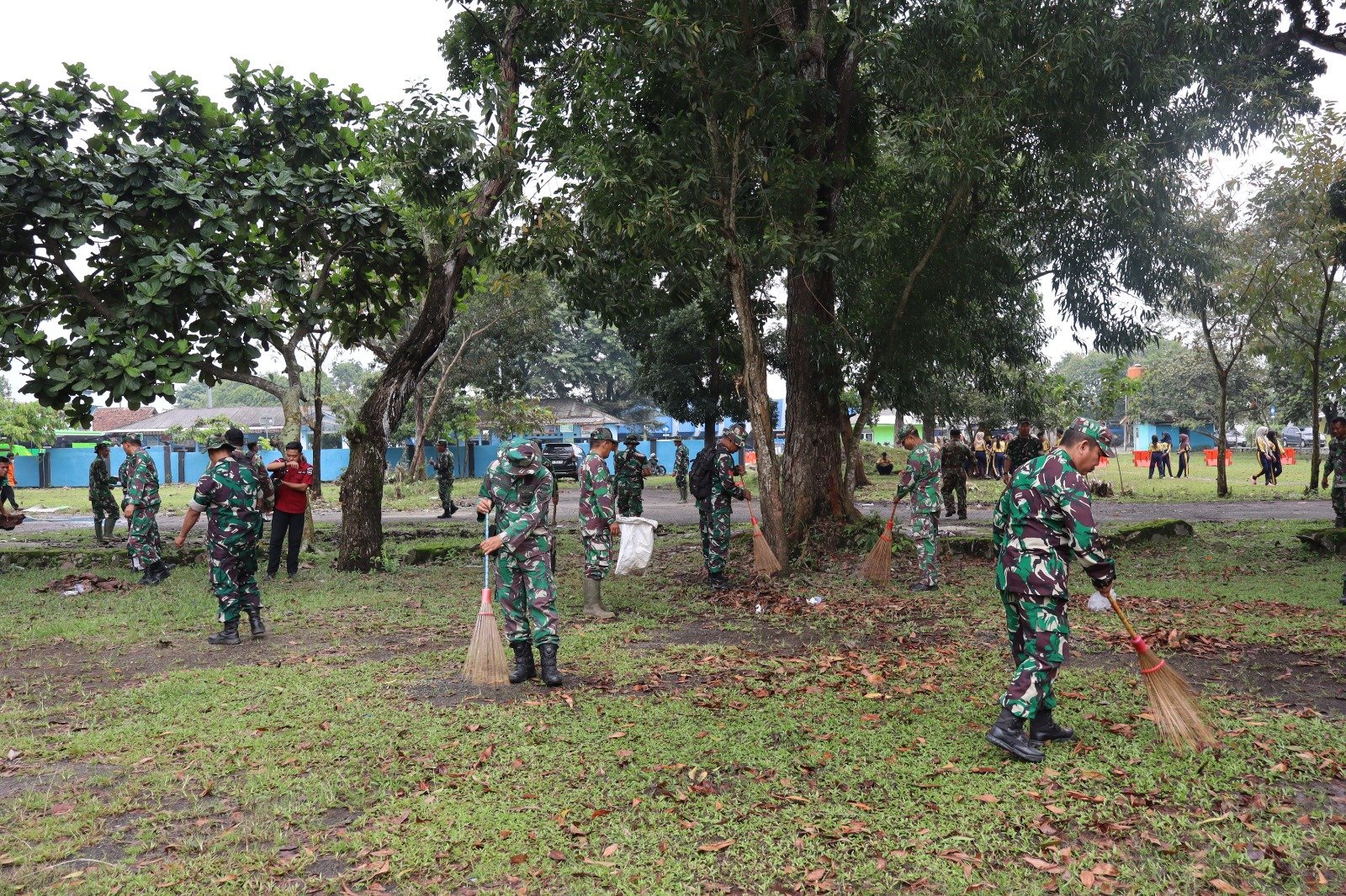 Sinergi Tanpa Sekat Pemandangan luar biasa terlihat saat personel TNI, Polri, Satpol PP, Dishub, hingga BPBD bahu-membahu dengan ormas seperti FKPPI, Hipakad, serta para pelajar dari SMA Taruna Gajah Mada dan SMPN 9 Metro. Tak ketinggalan, para Danramil jajaran Kodim 0411/KM turut terjun langsung di lapangan, membakar semangat para peserta.